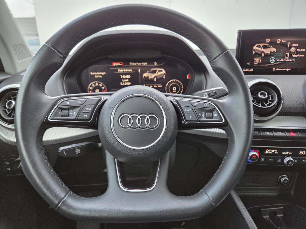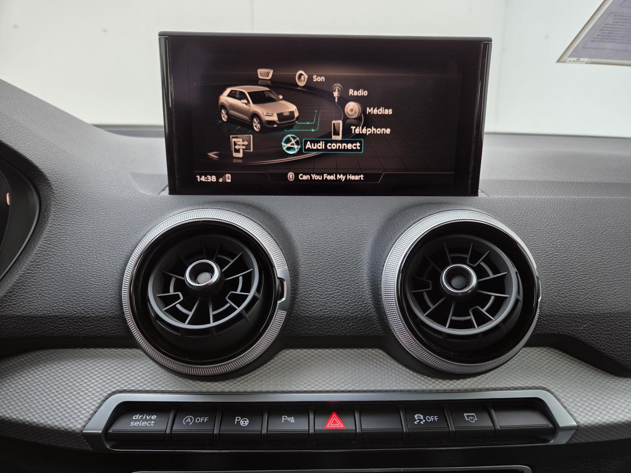 Accoudoir central avantAffichage de contrôle de la pression des pneusAudi Drive SelectAudi Hold AssistAudi Music InterfaceAudi Parking System : système acoustique d'aide au stationnement arrièreAudi sound system : 10 haut-parleurs incluant un haut-parleur central et un subwoofer ; amplificateur à 6 canaux avec une puissance totale de 180 wattsClimatisation automatique confort 2 zonesDétecteur de pluie et de luminositéDossier de banquette arrière rabattable en deux parties 40:60 ou entièrementFeux arrière à LEDFixation Isofix pour siege passager AVInscription “S line” sur les ailes avantInterface BluetoothLève-vitres électriques à l'avant et à l'arrièreLimiteur de vitesseMMI Radio PlusMoulures de seuils avec insert en aluminium et emblème S, éclairéesPack aluminium intérieurPack confortPack ConnectivityPack EclairagePommeau du levier/sélecteur de vitesses en cuir perforé noirProjecteurs Avants LEDRéception radio numérique, réception des signaux DAB, DAB+ et DMB AudioRégulateur de vitesseSellerie cuir/tissuSièges avant réglable en hauteurSièges Sport à l'avantVolant Sport S line en cuir style 3 branches avec multifonction avec emblème S (poignées de volant en cuir perforé)