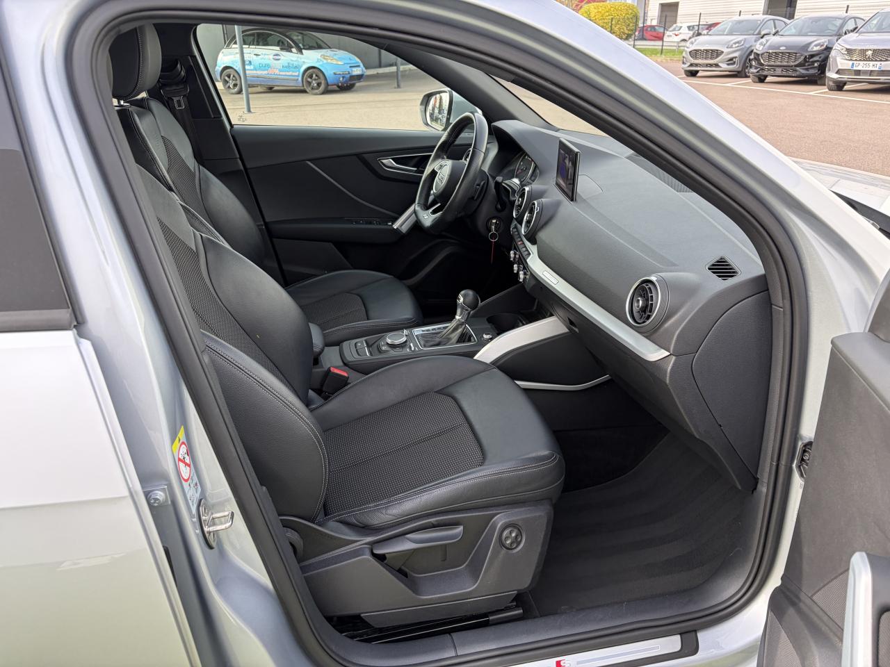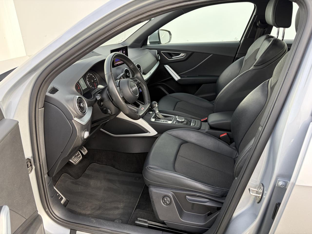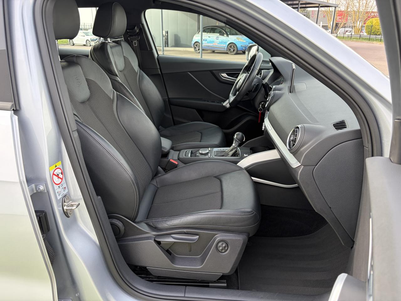 Accoudoir central avantAffichage du contrôle de la pression des pneumatiquesAirbags grand volume pour le conducteur et le passagerAirbags latéraux à l'avant et système d'airbags de têteAllume cigare et cendrierAntipatinage ASR pour une motricité optimale, empêche le patinage des roues motricesApplications décoratives en aluminium brossé matAppuie-tête à l'avant, réglables en hauteurAudi connect 3 moisAudi Drive SelectAudi Music InterfaceAudi Parking System : système acoustique d'aide au stationnement arrièreAudi pre sense frontAudi smartphone interfaceAudi Sound SystemBande grise en haut du pare-briseBlade Argent glacierBlocage électronique de différentiel (EDS)Boîte de vitesses S tronic séquentielle à 7 rapports à double embrayage avec commande électrohydrauliqueBoîtiers de rétroviseurs extérieurs dans la teinte du véhiculeCeinture de sécurité réglable en hauteurCeintures de sécurité 3 points automatiques pour toutes les placesCeintures de sécurité assorties à la couleur des garnituresChâssis “Sport”Ciel de pavillon en tissu noirClimatisation automatiqueColonne de direction de sécuritéContrôle électronique de stabilité (ESC)Contrôle de port de ceinture sur siège conducteur et passager AVDésactivation de l'airbag du passager avantDétecteur de pluie et allumage automatique des projecteursDéverrouillage de coffre par touche douce : déverrouillage avec assistance électriqueDirection assistée électromécaniqueDirection progressiveDispositif anti-erreur de carburantDossier de banquette arrière rabattable en deux parties , 1/3, 2/3 ou complétementEclairage intérieur, à temporisation avec contacteurs sur toutes les portières ; éclairage du coffreEcrous antivolFeux arrière rouges, avec feux de recul blancs et feux de brouillard arrière intégrés, feux de plaque arrière à LED ; incluant troisième feu stop surélevéFixation pour sièges enfants ISOFIX et Top Tether pour les places arrière extérieuresFrein de stationnement electromécaniqueFreins à disque à l'avant et à l'arrièreIdentification du modèle/technologie sur le capot de coffre ; sur demande sans identification du modèle à l'arrièreInscription “S line” sur les ailes avantInscription quattro sur la calandre, le capot de coffre et le tableau de bord côté passagerInterface BluetoothJantes en aluminium coulé style 5 branches en Y, 7 J x 18 avec pneus 215/50 R 18Lave-pharesMMI navigationMoulures de seuils avec insert en aluminium et emblème S, éclairéesOutillage de bord et cricPédales et repose-pied en acier inoxydablePare-soleil avec miroirs de courtoisiePeinture intégralePeinture vernie Noir BrillantPhares à LED avec clignotants arrière à LED dynamiquesPommeau du levier/sélecteur de vitesses en cuir perforé noirProtection antidémarrage électronique, intégrée à la gestion du moteur, activation automatique par la clé du véhiculeQuattro : transmission intégrale permanente avec répartition asymétrique et dynamique de coupleRécupération d'énergie, générée lors des phases de freinage ou de décélération permettant une économie de carburantRégulateur de vitesseRéservoir AdBlue de 12 LRétroviseurs extérieurs avec clignotants à LED intégrésRétroviseurs extérieurs réglables et escamotables électriquement, dégivrants des deux côtés et buses de lave-glaces dégivrantesRétroviseurs extérieurs rabattables automatiquementRepose-genoux et diffuseurs d'air laquésRoue de secours à encombrement réduitSécurité enfantsSellerie S line en tissu Pulse/cuir noirSièges avant réglables manuellement en hauteur et en profondeurSièges avant sportSortie d'échappement avec embout chroméSorties d'échappement monoflux avec 2 sorties à gaucheSurpiqûres contrastées sur les selleries, volant Sport en cuir, soufflet de levier/sélecteur de vitesses ainsi que tapis complémentairesSuspension sportSystème d'information du conducteur avec écran couleurSystème Start/Stop désactivableTapis complémentaires à l'avant et à l'arrièreTriangle de pré-signalisationTrousse de secoursVide-pochesVitres électriques avant et arrièreVitres latérales et arrière athermiqueVolant réglable manuellement en hauteur et en profondeurVolant Sport S line en cuir style 3 branches avec multifonction avec emblème S (poignées de volant en cuir perforé)