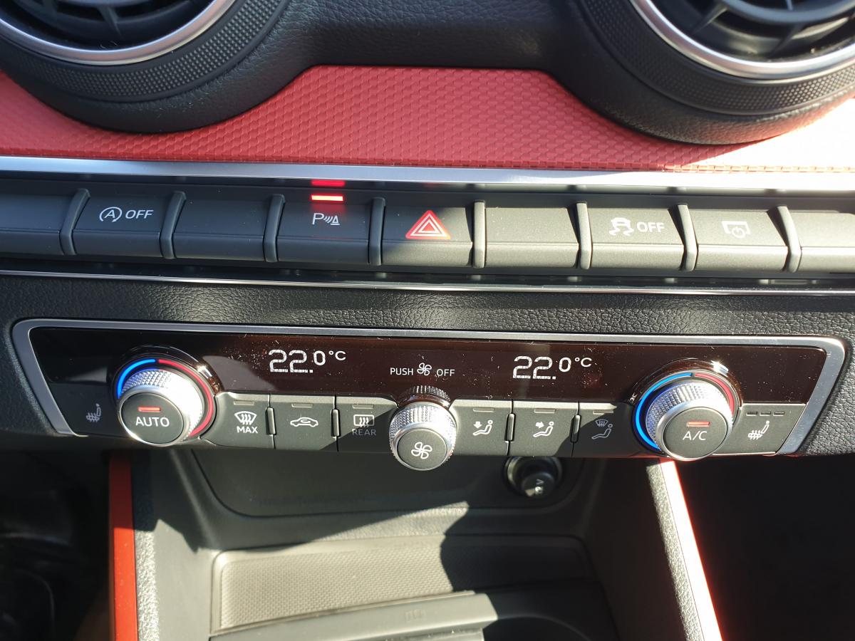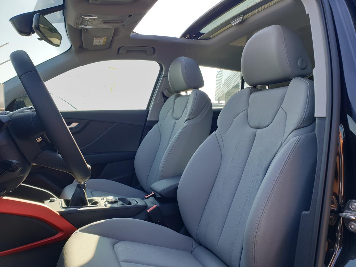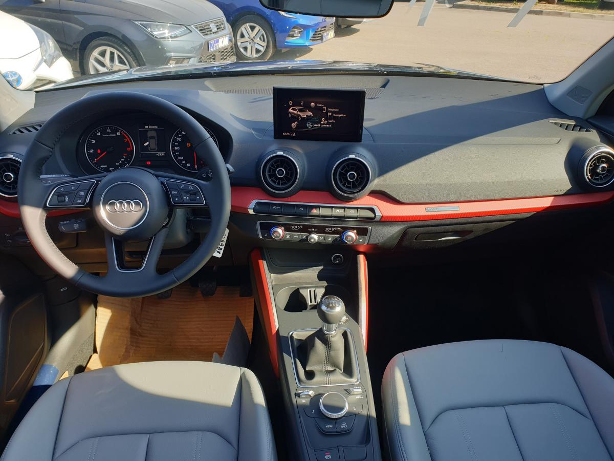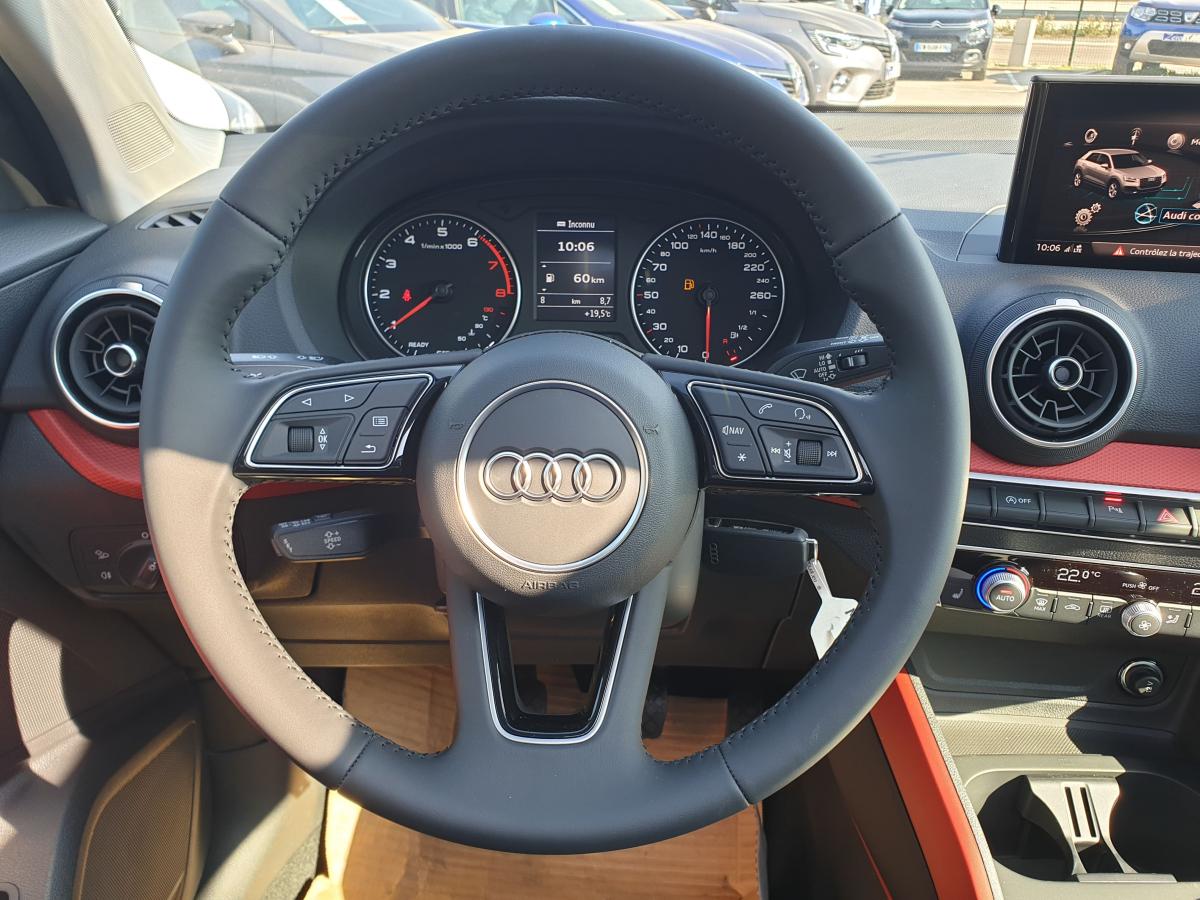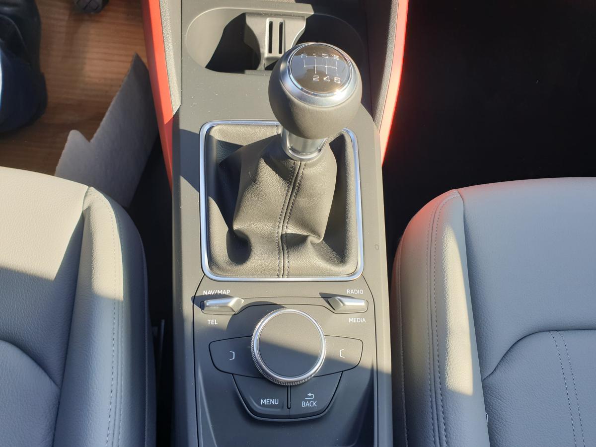 Éléments extérieurs spécifiques Sport (calandre en gris platine, grilles d'entrée d'air en noir mat, diffuseur spécifique, partie inférieure de pare-chocs couleur carrosserie)Accoudoir central avantAffichage de contrôle de la pression des pneusAudi Drive SelectAudi Parking System : système acoustique d'aide au stationnement arrièreClignotants arrière à LED DynamiqueClimatisation automatiqueContrôle électronique de stabilité (ESC)Détecteur de pluie et de luminositéDéverrouillage de coffre par touche douce : déverrouillage avec assistance électriqueDirection progressiveEclairage intérieur, à temporisation avec contacteurs sur toutes les portières ; éclairage du coffreFeux arrière rouges, avec feux de recul blancs et feux de brouillard arrière intégrés, feux de plaque arrière à LED ; incluant troisième feu stop surélevéFixation pour sièges enfants ISOFIX et Top Tether pour les places arrière extérieuresInterface BluetoothJantes en aluminium coulé style 5 branches en étoile 17”Limitateur et régulateur de vitesseMMI Radio PlusPhares halogènes à surfaces libres sous vitre transparente, réglage électrique du site des phares et commande de feux de stationnement, feux diurnesRétroviseurs extérieurs avec clignotants à LED intégrésRétroviseurs extérieurs réglables électriquement et dégivrants des deux côtés et buses de lave-glaces dégivrantesSièges avant SportSystème Start/Stop désactivableVitres électriques avant et arrièreVOEUVolant multifonction à 3 branches en cuir