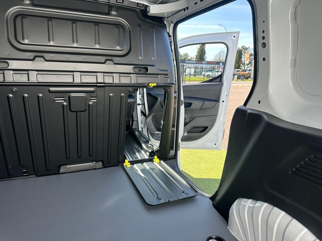 6 anneaux d'arrimage en zone de chargementAide au démarrage en côteAide au stationnement arrièreAirbag frontal conducteurAirbag passager avec airbags latéraux et rideaux avantAllumage automatique des projecteursAppuis-tête passager réglable en hauteurCapucineCloison pleine fixeCommutation automatique des feux de routeCondamnation centralisée avec 1 plip HF + 1 cléConnect Box avec Pack SOS et assistance inclusContrôle dynamique de conduite (ESP) avec fonction anti-patinage (ASR)Détecteurs de sous-gonflageEssuie-vitre avant avec système de lavage 'Magic Wash'Frein de stationnement électriqueJantes tôle 15'' grisesLève-vitres avant électriquesPack SafetyPeinture opaque Blanc IcyPorte latérale droite coulissante tôléePortes arrières battantes tôlées 60/40 avec ouverture à 180°Prise 12 V sur planche de bordProjecteurs EcoLEDRégulateur et limiteur de vitesseRétroviseurs extérieurs réglables électriquement et dégivrantsRevêtement moquette dans l'habitacleSellerie tissu Curitiba Triton MeltemSiège conducteur avec réglage en longueur et dossier inclinableSiège passager réglable en inclinaisonStation d'accueil pour smartphone - Entrée avec reconnaissance vocale pour un seul smartphone, commandes au volant, 2 ports USB (2 charges)Système antiblocage des roues (ABS) & Assistance au freinage d'urgence (AFU)Volant multifonctionsVolant réglable en hauteur et en profondeur