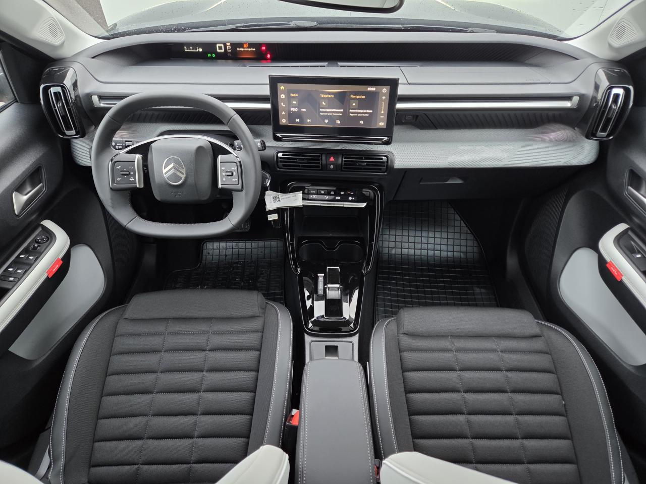 1 Prise USB type-C (charge standard) et data sur la planche de bord + 1 Prise USB type-C (charge rapide 3A) sur la console centrale + 1 Prises USB type-C (charge rapide 3A) en rang 21 Prise USB type-C (charge standard) et data sur la planche de bord + 1 Prise USB type-C (charge rapide 3A) sur la console centrale + 2 Prises USB type-C (charge rapide 3A) en rang 2ABS avec répartiteur électronique de freinage (REF) et aide au freinage d'urgence (AFU)Aide au démarrage en côteAide au stationnement avant, arrière et latéral avec Caméra de reculAllumage automatique des projecteursAmbiance Métropolitan GreyBanquette arrière fractionnable 2/3 - 1/3Barres de toit Noir brillantBoitiers de rétroviseurs extérieurs noir brillantCitroën Head up Display (affichage tête haute couleur - TFT) avec C-Zen LoungeClignotants impulsionnelsClimatisation automatiqueCommandes audio au volantCommutation automatique des feux de routeDétecteur de sous-gonflageEcran central tactile de 10,25"Essuie-glace à déclenchement automatiqueFeux arrière 3D à LEDFeux diurnes à LEDFrein à main avec insert chromeFrein de stationnement électriqueIntégration Apple CarPlay et Android Auto sans filJantes Alliage 17'' ARAGONITE DiamantéesKit mains libres BluetoothNavigation 3D sur écran central 10,25‘’Ordinateur de bord multifonction avec affichage de la température extérieurePack SafetyPrise 12 volts en arrière de la console centralePrise 12V à l'avant de la console centraleProjecteurs avant LEDRecharge smartphone sans filRépétiteurs de clignotant à LED intégrés aux rétroviseursRétroviseur intérieur électrochromeRétroviseurs extérieurs dégivrants et rabattables électriquementSuspension Citroën Advanced ComfortSystème audio numérique (DAB) MP3 6 HPSystème de surveillance d'angle mortVitres latérales et lunette arrière surteintées