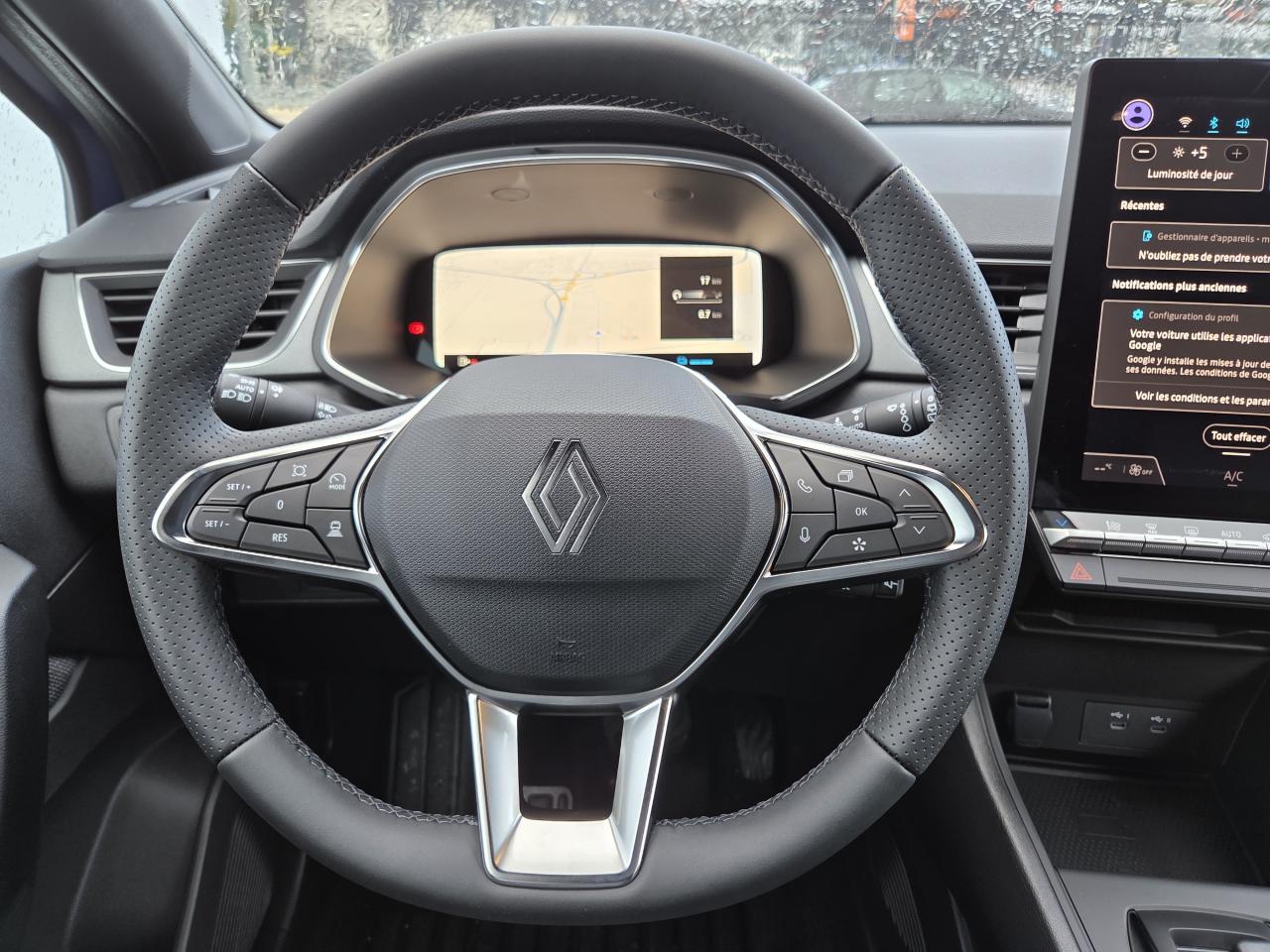 2 Prises USB C à l'arrière2 Prises USB C à l'avantAccoudoir / console centrale avec rangementAide au démarrage en côteAide au stationnement arrièreAlerte de franchissement de ligneAlerte de survitesse avec reconnaissance des panneaux de signalisationAllumage automatique des projecteursAndroid Auto et Apple Carplay sans filAntenne de type requin couleur noir brillantAppel d'Urgence RenaultBanquette arrière coulissante, rabattable 1/3-2/3 avec 3 appuis-têtes réglables en hauteurBluetoothCaméra de reculCarte Renault mains-libresCondamnation électrique centralisée des portes avec télécommande et condamnation des portes en roulantCaméra de ReculSystème de Navigation GPSDétecteur de fatigueDétection avant avec correction trajectoire d’urgenceEclairage intelligent (commutation automatique feux de croisement/feux de route)Eclairage intérieur à LEDFeux de stop à LEDFrein de parking électrique avec fonction Auto-HoldJantes Aluminium 18’’ Black HoleLève vitres électriques avant et arrière impulsionnelsLimiteur de vitesseOpenR link 10,4” : système multimédia connecté avec Google intégréPack ConfortPalettes au volantPlancher de coffre mobileProjecteurs avant Performance 100 % LED : Renault LED pure visionRenault Multi-sense : personnalisation des modes de conduite et ambiance lumineuse intérieure (perso / comfort / sport / eco)Rétroviseur intérieur électrochromeRétroviseurs extérieurs réglables, rabattables électriquement et dégivrantsSiège conducteur réglable en hauteurSiège passager réglable en hauteurSystème audio Arkamys auditorium avec 6 haut-parleursSystème de détection de la pression des pneusSystème de fixation ISOFIX aux places latérales arrière et passager avantTableau de bord avec écran numérique et personnalisable 10''Vitres latérales et lunette arrière surteintéesVolant réglable en hauteur et en profondeur
