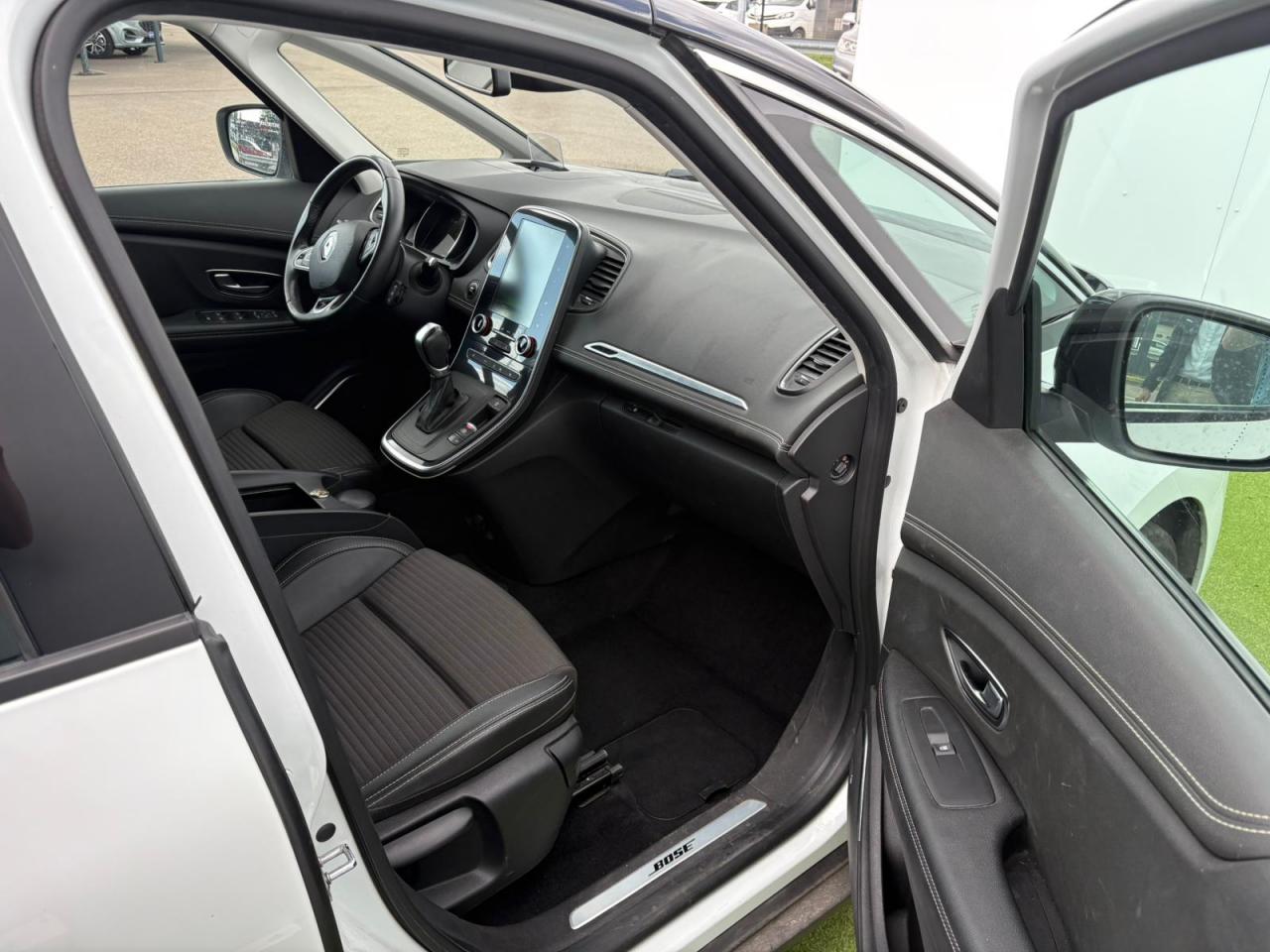 2 liseuses centrales au rang 1 + 2 liseuses latérales au rang 2Aérateurs aux places arrièresABS avec aide au freinage d'urgenceAccoudoir central arrière escamotableAide au démarrage en côteAirbags frontaux conducteur et passager adaptatifsAirbags latéraux (thorax / bassin) avantAirbags rideaux de têtes aux places avant et arrièreAlerte de survitesse avec reconnaissance des panneaux de signalisationAlerte distance de sécuritéAppuie-tête avant et arrière règlables en hauteurBandeau de hayon ChromeBanquette arrière rabattable 1/3-2/3 coulissante rabattable en plancher platBose Sound SystemCarte Renault avec accès et démarrage mains-libres avec fermeture à l’éloignementClé rétractable 3 boutonsCommandes de l'autoradio au volantCommutation automatique des feux de croisement et de route, Light AssistCompteurs et jauges TFT 7“ avec matrice couleur reconfigurablesCondamnation automatique des ouvrants en roulantConsole centrale coulissante Easy Life avec accoudoirContrôle dynamique de trajectoire (ESP)Coques de rétroviseurs noiresEclairage d‘ambiance lumineuse (MULTI-SENSE)Feux de jour à LEDFeux de jour arrière LED 3D Edge LightFinition chromée sur grille de calandreFinition chrome satiné du pommeau de levier de vitesseFixations Isofix pour siège passager avant et places latérales arrièreFrein de parking assistéFreinage actif d‘urgence Inter Urbain / City / PiétonsIndicateur de changement de vitessesJantes alliage 20“ ExceptionKit de réparation des pneusLève-vitres avant et arrière électriques, à impulsion avec dispositif anti-pincementMiroir de surveillance enfantsMise en tablette du siège passager avantMode EcoModularité One-TouchOrdinateur de bordPare-soleil pour le conducteur et le passager avant avec miroir de courtoisie éclairéPlancher du coffre repositionnable en 2 positions et inclinablePoches aumônières au dos des sièges avantPoignées de porte avec jonc chroméPommeau de levier de vitesses en cuirPrises 12 V à l'avant et à l'arrièreProjecteurs antibrouillardProjecteurs avant Full Led Pure VisionProtections inférieures de porte chroméesRégulateur et limiteur de vitesseRépétiteurs de clignotant à LED intégrés aux rétroviseursRétroviseur intérieur électrochromeRétroviseurs extérieurs électriques et dégivrantsRangement côté conducteurRenault MULTI-SENSE (choix des modes de conduite)Rideaux pare-soleilSécurité enfant aux portes arrièreSéquence d‘accueil à l‘approche du véhicule avec éclairage de signature lumineuse, éclairage de sol et de l'ambiance lumineuse intérieureSellerie mixte similicuir / Carbone FoncéSeuils de porte chromésSiège conducteur à réglage en hauteurSiège conducteur à réglage lombaireSiège passager avant avec réglage lombaireSiège passager réglable en hauteurStop & StartSurpiqûres claires sur bandeaux de portes avant et planche de bordSystème "Follow me home" (phares à extinction temporisée)Système de surveillance de pression des pneusTablette cache-bagages rigide articulée en 2 partiesTablettes Easy Life au dos des sièges avantTiroir Easy Life (éclairé et réfrigéré)Trappes de rangement sous les pieds avant et arrièreUne prise 12V dans le coffreVitres latérales et lunette arrière surteintéesVolant gainé cuir Nappa réglable en hauteur et en profondeur